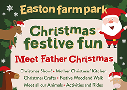 Easton Farm Park has been transformed into a magical world this Christmas with singing reindeer, polar bears, an uplifting show with Farmer Tinsel, who needs your help to save Christmas, crafts, Mother Christmas Kitchen, activities, rides, and, of course, a visit to Father Christmas himself.